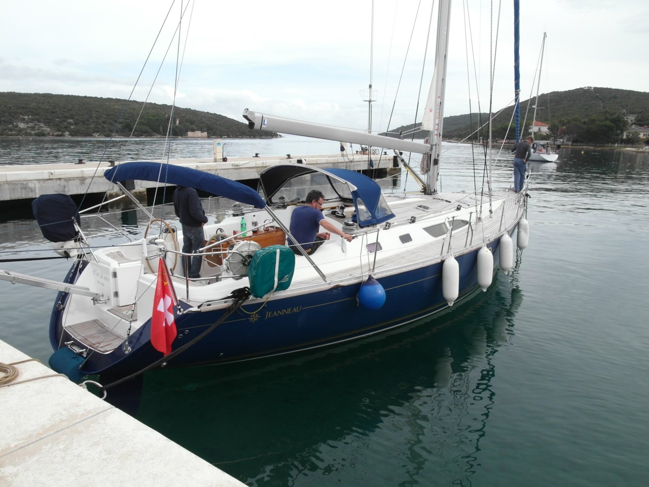 The yacht is a well-maintained Sun Odyssey 45.2 from Jeanneau.